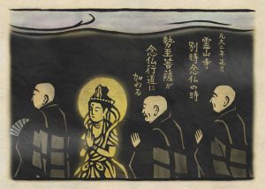 元久二年四月五日、法然上人は九条兼実公の月輪殿に招かれ、数時間の法談をされた。兼実公は上人がお帰りになるとき、庭先に崩れるように降りられ、額を地につけて礼拝をした。なせなら、兼実公には法然上人が宙で蓮華を踏み、頭上に光明を輝かせている姿が見えたのである法然上人が庭の池の橋を渡られるとき、頭光ははっきりと見えた。それ以来、その橋は〈頭光の橋〉と呼ばれるようになった。